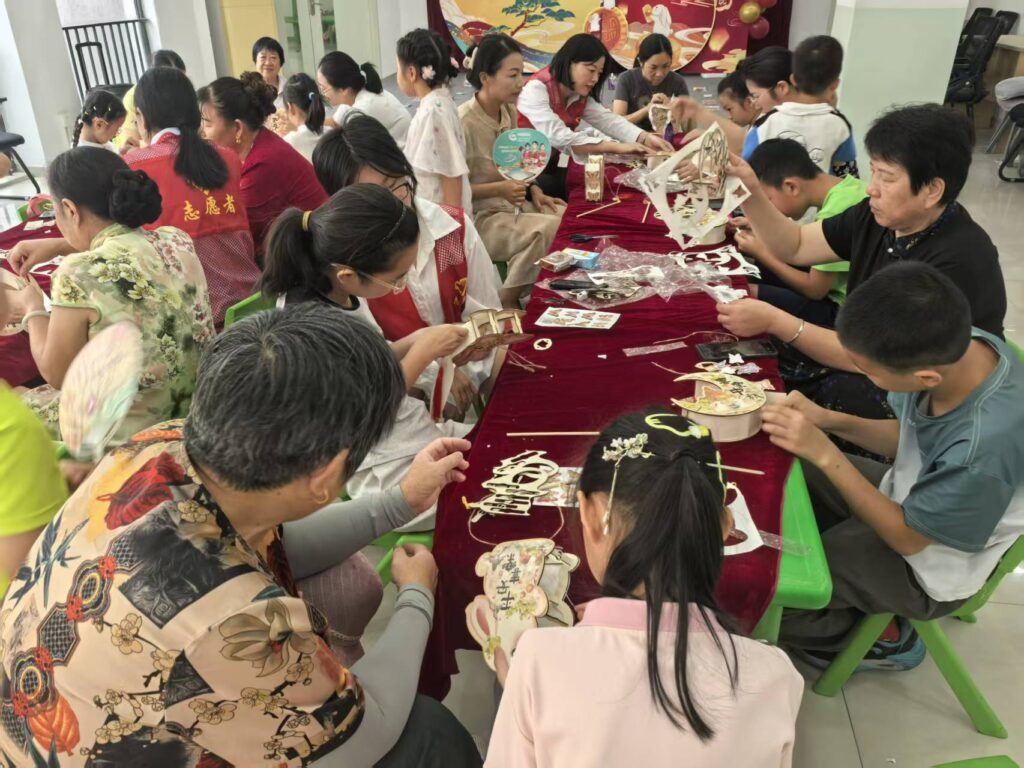 - 月兔灯笼DIY:工作人员提前准备好灯笼材料包,家长与孩子携手剪裁、粘贴、绘画,一盏盏造型可爱的月兔灯笼在亲子协作中诞生,点亮了团圆的祝福;